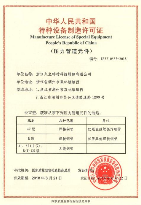 特(tè)種設備製造許可證