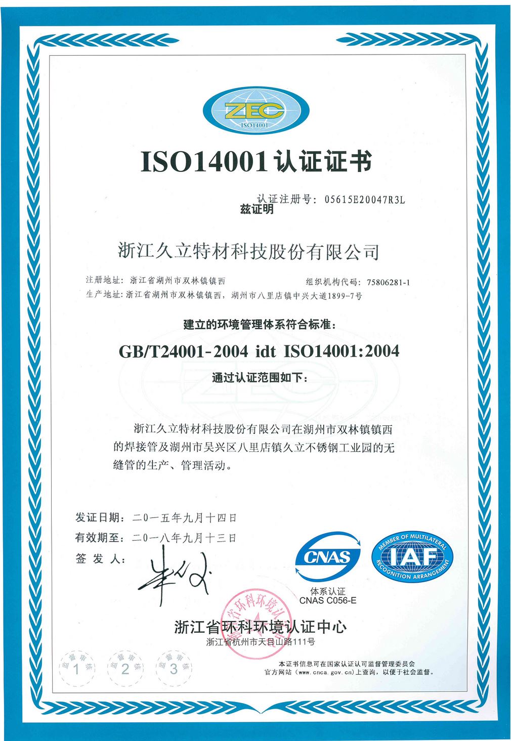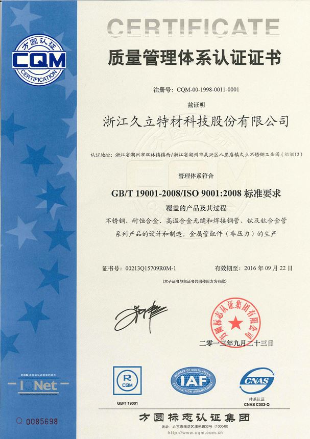公司創建於1987年,目前占地115萬平方米(mǐ),擁有員工3000餘名,是一家專業(yè)致力於工(gōng)業用不鏽鋼及特種合金管材、雙金屬複合管材、管配件、塗層、模具等管道係列產品研發與生(shēng)產的企業。公司是浙江(jiāng)省龍頭骨幹企(qǐ)業,國家(jiā)級高新技術企業、浙江省三(sān)名(míng)企業、湖州市明(míng)星企業,核心企業-久立特(tè)材於2009年成功上市(股票代碼:002318)。