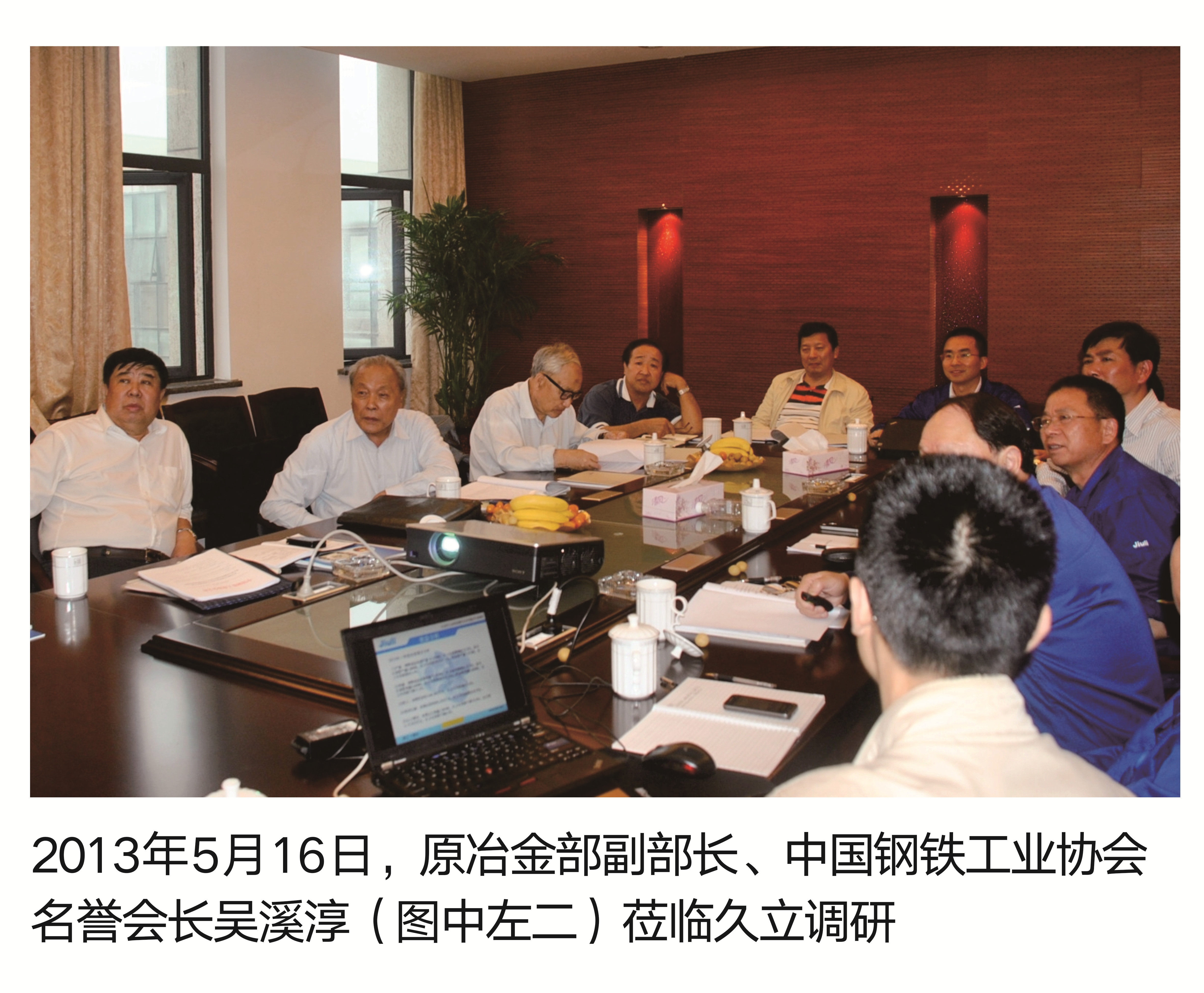2013那(nà)年5月16日,原冶金部副部長、中國鋼鐵工業協會名譽(yù)會長吳溪淳(圖中左二)蒞臨久立調研