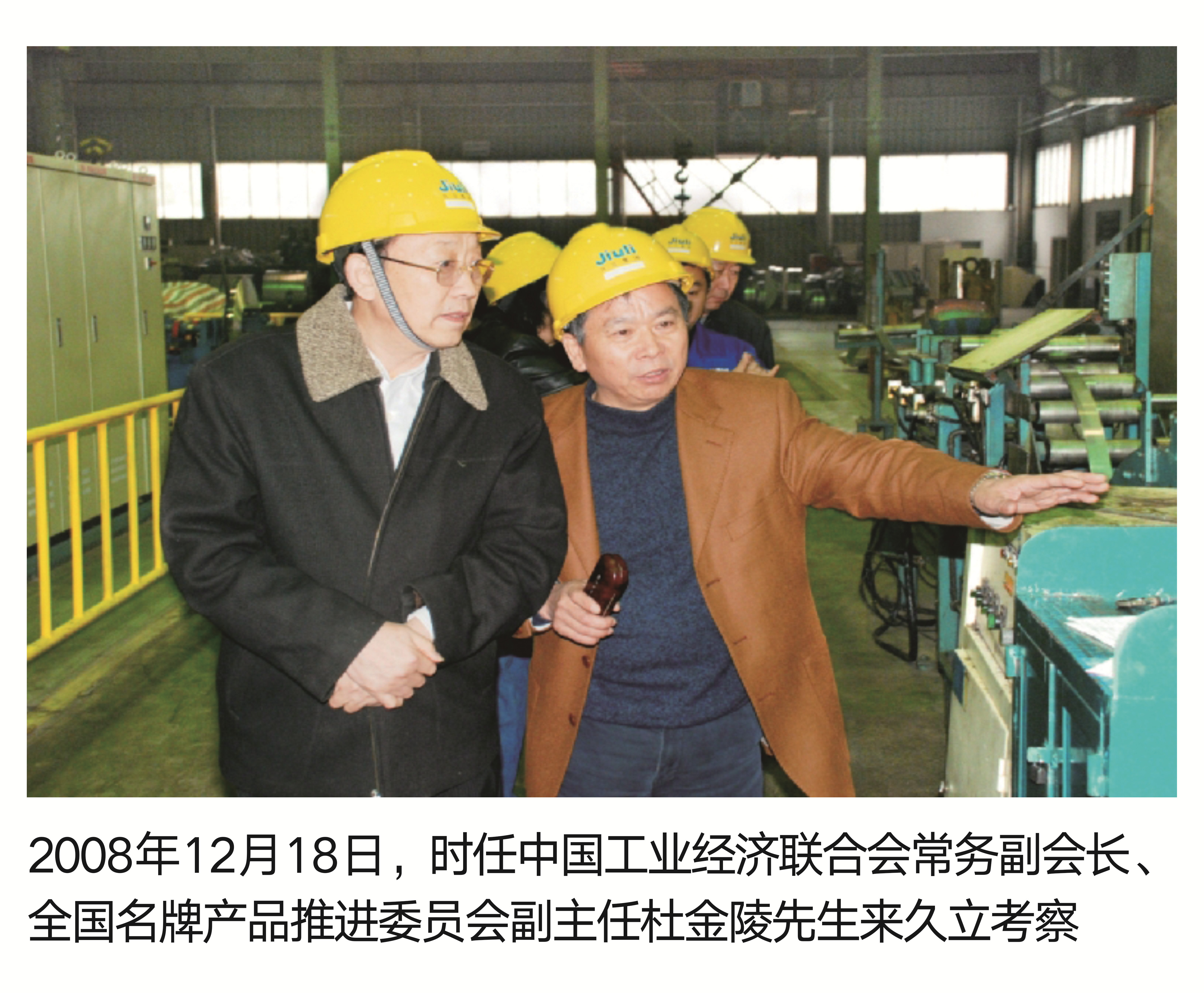 2008年(nián)12月18日,時任中國工業經濟聯合會常務副會長、全國名牌產品推進委員會副主任杜金陵先生(shēng)來久立 考察